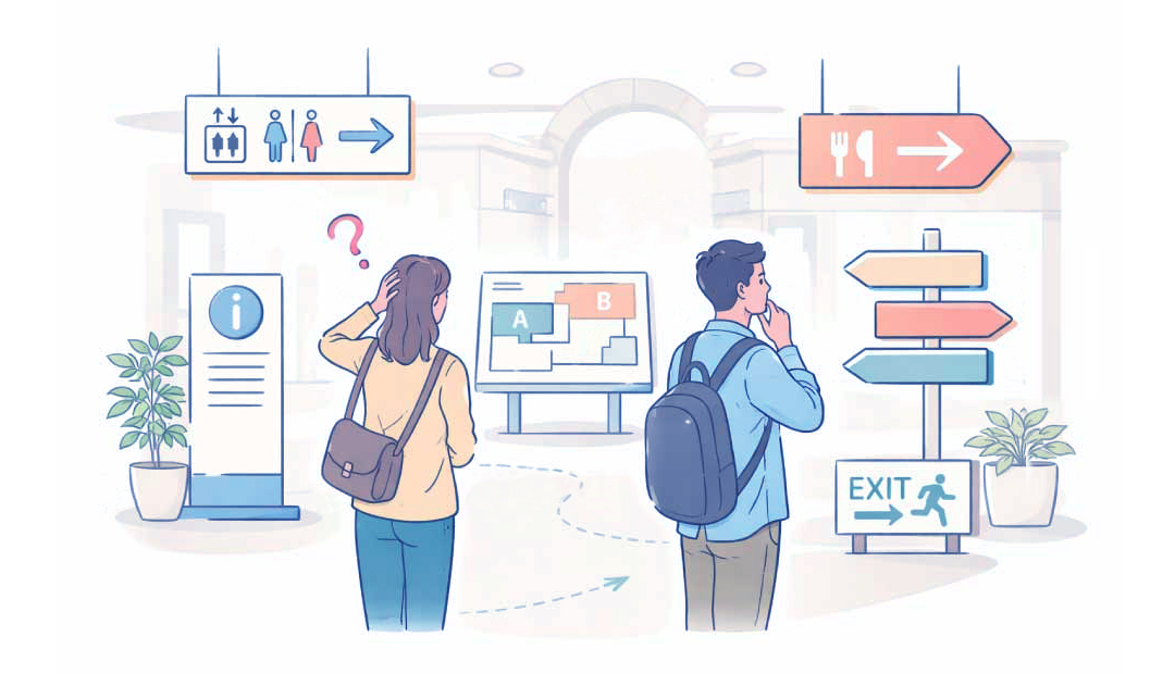 施設の案内サインについて、「わかりにくいと言われる」「人の流れが思った通りにならない」「サインを増やしたがあまり変わらない」――そんな悩みを感じたことはありませんか?